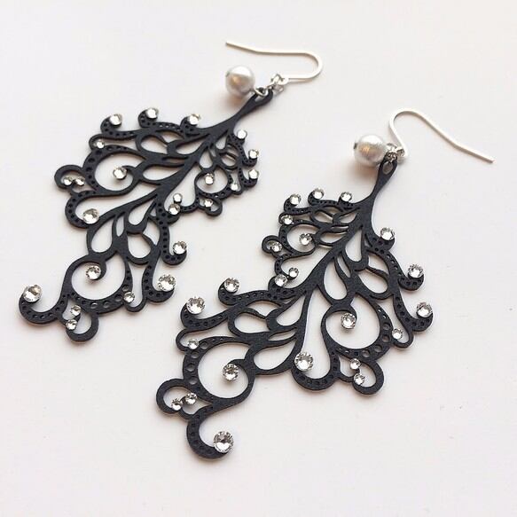 ハンドメイド ピアス 揺れる スワロフスキー レディース アクセサリー オシャレ パーティ 紙 耐水加工