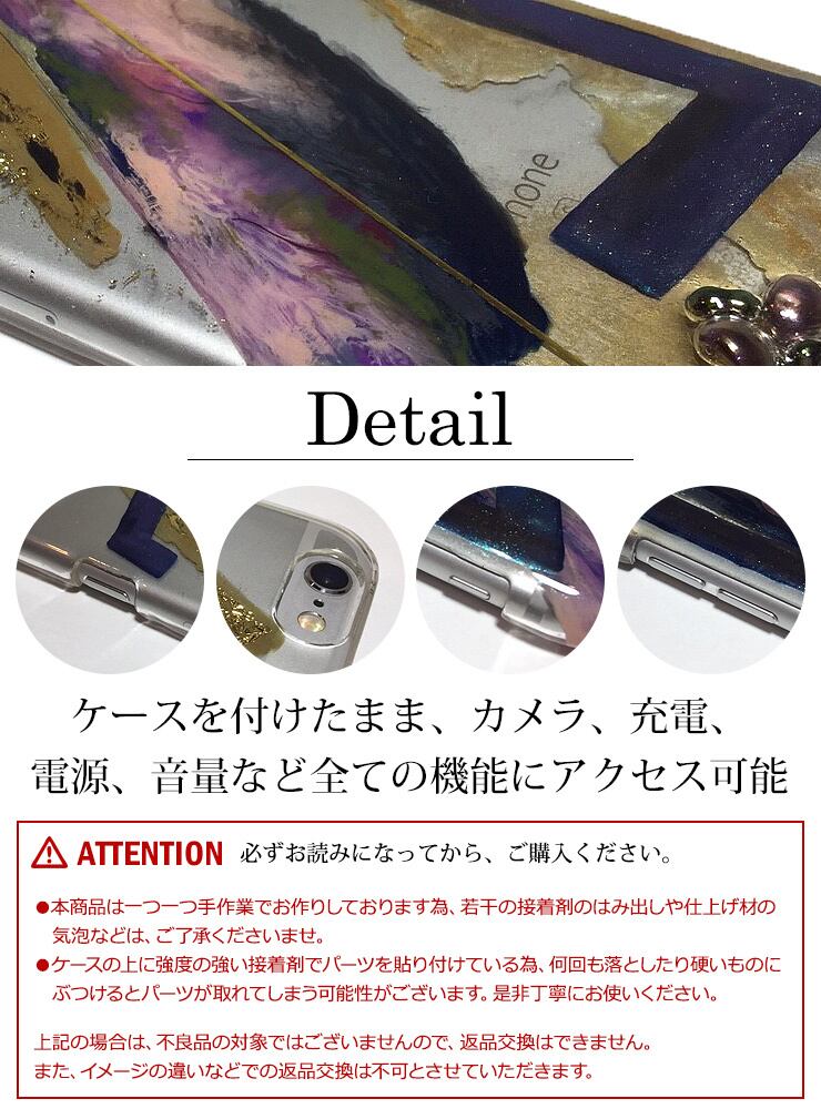 ・ケースの上に強度の強い接着剤でパーツを貼り付けている為、何回も落としたり硬いものにぶつけるとパーツが取れてしまう可能性がございます。是非丁寧にお使いください。