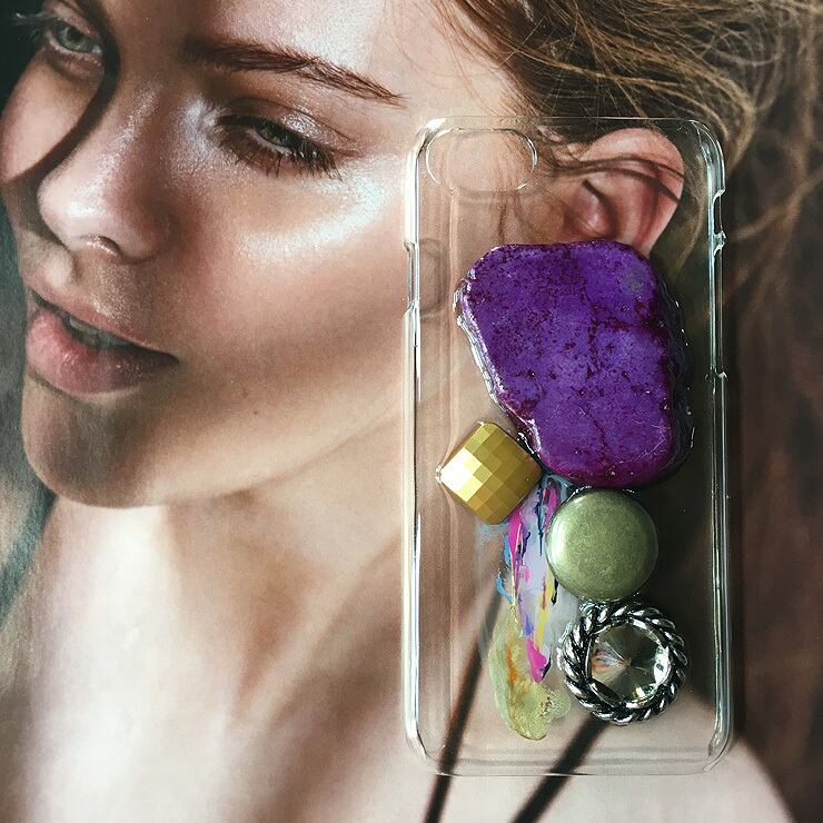 ・ケースの上に強度の強い接着剤でパーツを貼り付けている為、何回も落としたり硬いものにぶつけるとパーツが取れてしまう可能性がございます。是非丁寧にお使いください。