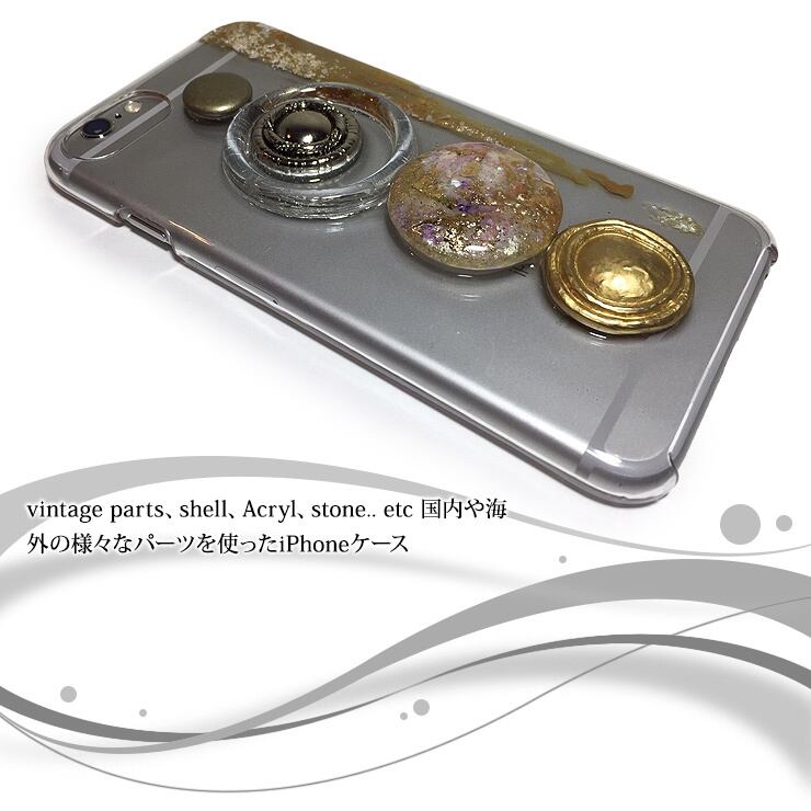 ・ケースの上に強度の強い接着剤でパーツを貼り付けている為、何回も落としたり硬いものにぶつけるとパーツが取れてしまう可能性がございます。是非丁寧にお使いください。
